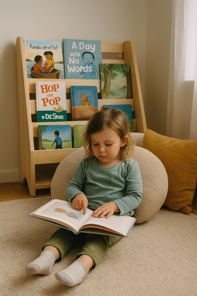 Para crianças autistas, um ambiente calmo e previsível é essencial para desenvolver gosto pela leitura. O cantinho de leitura Montessori oferece segurança, conforto e autonomia, permitindo que a criança explore livros no próprio ritmo, sem pressões externas.